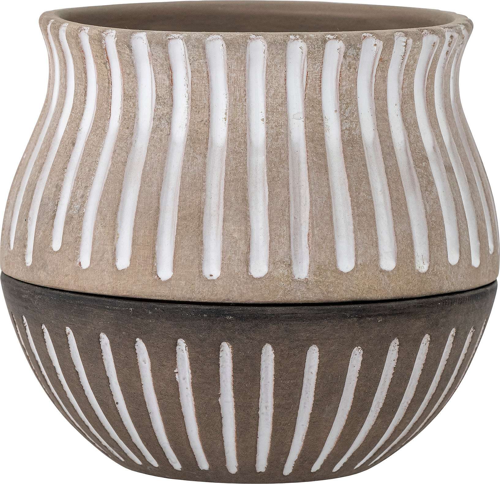 Der Blumentopfdeckel Neliya von Bloomingville ist ein stilvolles 2-in-1-Zubehör. Er besteht aus zwei Teilen – einem Gehäuse mit Abflussloch und einem Untersetzer. Die Untertasse kann als Schale oder als separate Dekoration verwendet werden. Es ist wichtig, immer eine Schale unter das Gehäuse zu stellen, um zu verhindern, dass Wasser aus der Kanne schwappt.